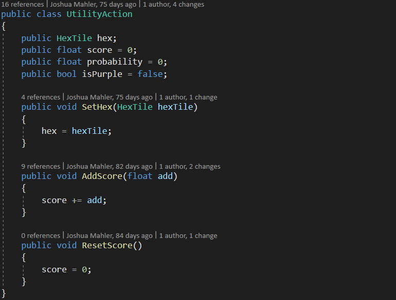 The AI in this game is developed by Josh Mahler (that’s me!). It uses a Utility based AI to tell the player’s opponents how to take their turns.